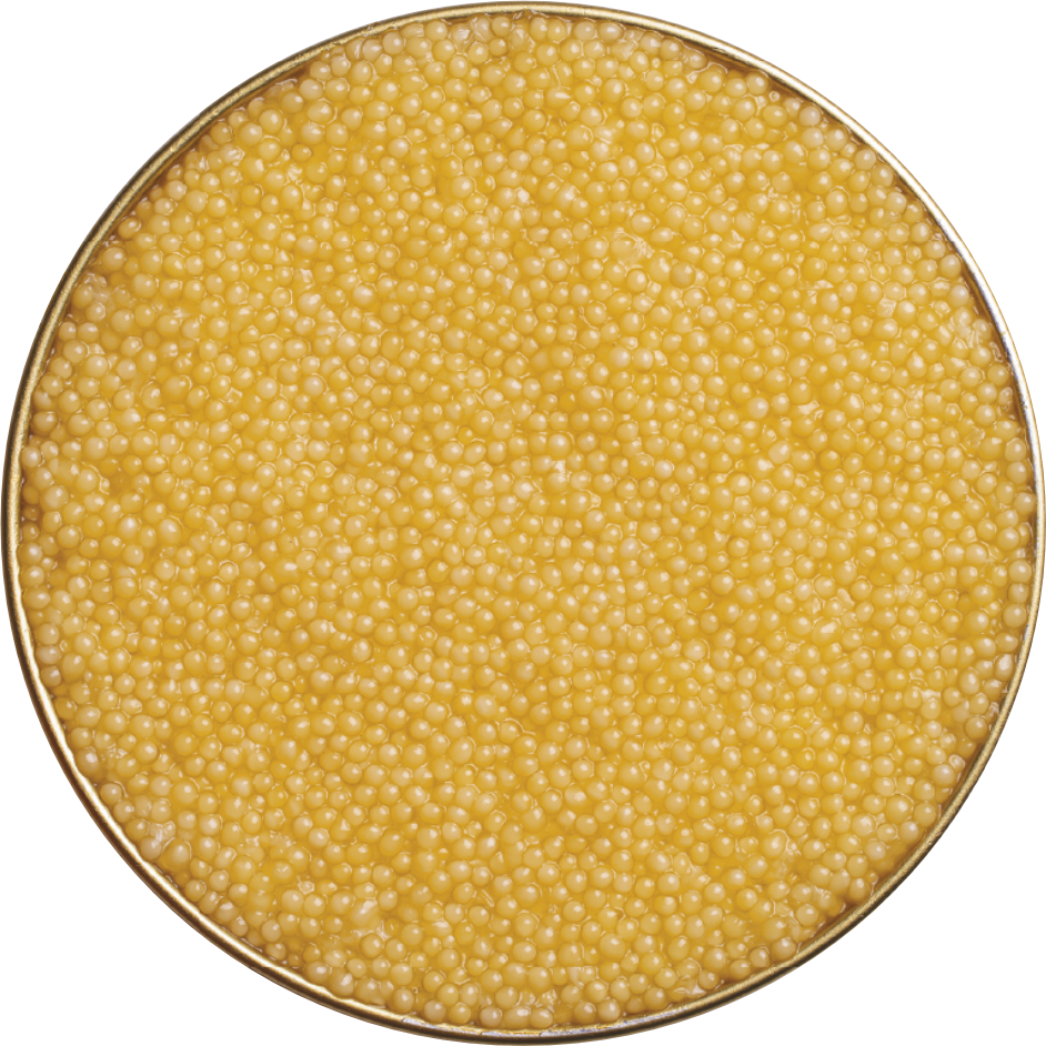 A luxury delight from rare albino sterlet fish, its golden hue and delicate pearls offer an exquisite burst of flavors with a nutty finish.