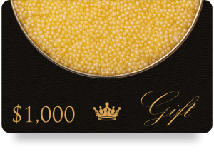 For the ultimate luxury experience, this $1,000 gift card offers the recipient an opportunity to explore the full range of our finest caviar and elegant accompaniments. A gift that speaks volumes, perfect for celebrating life’s grandest moments.