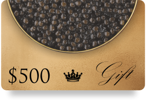 Give the gift of exquisite caviar with this $500 gift card. Your recipient can enjoy a premium selection of our finest caviar and sophisticated accompaniments, perfect for special occasions or gourmet indulgences.