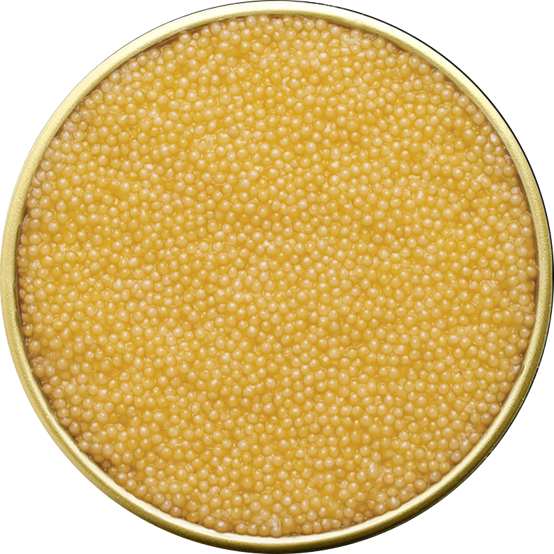 Is a pinnacle of luxury and taste. Harvested from rare albino sterlet fish, its golden hue dazzles the eye, promising an exquisite gastronomic experience. Each pearl offers a delicate burst of flavors.